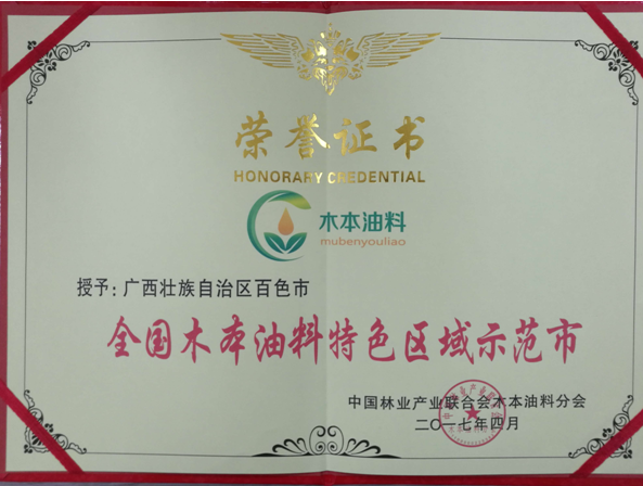 今年4月我市被中国林业产业联合会木本油料分会授予"全国木本油料特色区域示范市"荣誉称号。凌云县下甲镇双达村油茶低产林改造示范基地被广西壮族自治区林业厅授予"第一批油茶高产高效示范园"称号。全区油茶高产高效示范园建设启动仪式暨培训班在我市平果县举办。今年,全市完成油茶新造林9.0496万亩,完成率100.5%;完成油茶低产林改造15.17万亩,完成率100.5%。创建油茶"双高"示范基地65处、面积62583亩。全市油茶面积达170.63万亩,预计产量达14.8万吨,总产值达58亿元。加大"百色山茶油"地理证明商标和"佰色色拉油"普通商标申报工作力度。目前,已完成品牌申报专家论证,"百色山茶油"地理标志证明商标注册已通过国家质检总局形式审查,"佰色色拉油"普通商标注册及获准国家地理标志保护产品获国家工商管理部门受理。